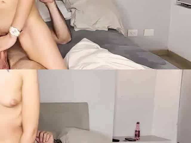 This babe pleasures herself with a sex tool whilst this chab grabs her breast