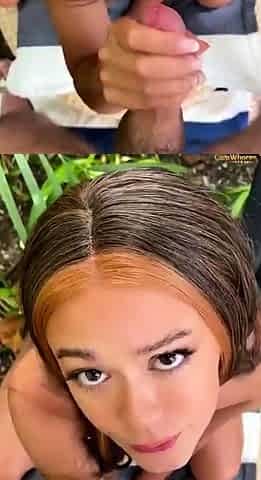 Black slut sucks big cock outdoors and loves the taste in hd
