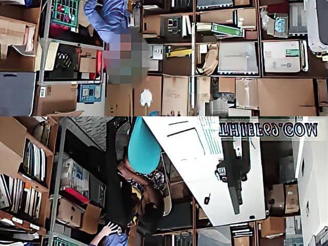 Busty black amateur fucking on the desk with the manager