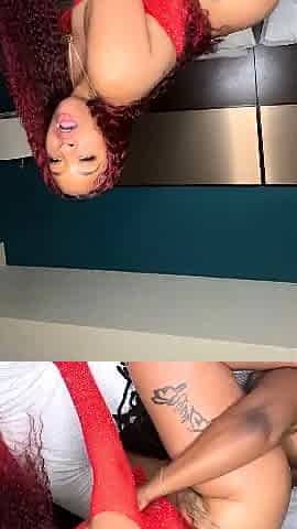 1325 - Satin Red/black Dress, Tanga, White Slut, Doggystyle, POV, Deepthroat, Rimming