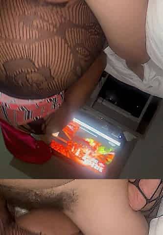 Black lingerie teaser fucks a black guy with a BIG dick