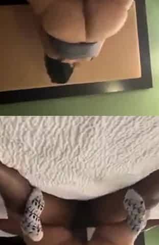 Oiled up black gal-next-door groans and bounces butt for her boyfriend