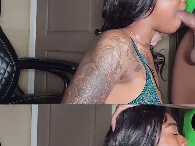 Tattooed Black Babe Surprises Producer With Sloppy Blowjob At Audition!