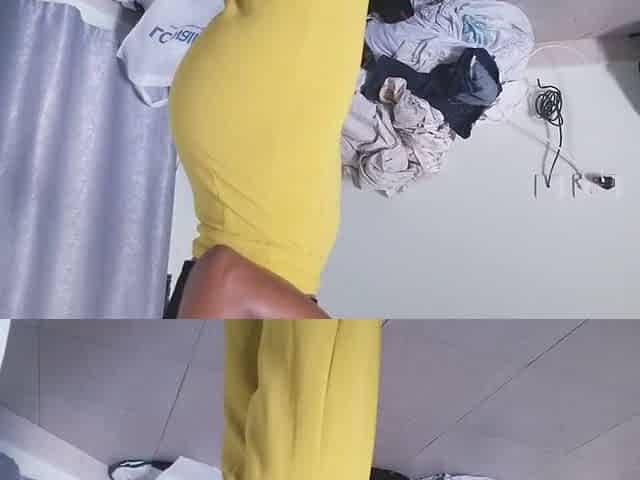 Horny black stepmom Sweet Baebs Melanin plays with her big ass in a red skirt at home