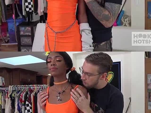 Hot ebony beauty sucks and bangs a white knob like there's no the next day