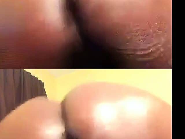 Two ebony beauties with their asses all oiled up please each other with a sex toy