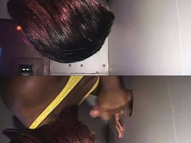 Nasty ebony babe gets all her holes filled with cum at the gloryhole