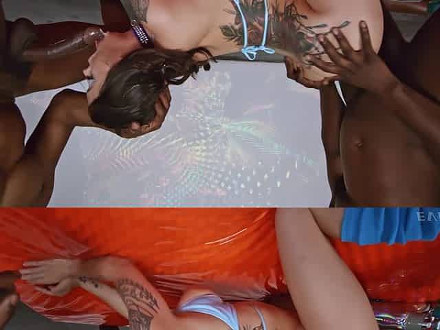 Shy cute Colombia Sussy Sweet fucks 3 big black studs with double