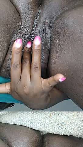 Massaging my chunky ebony snatch...