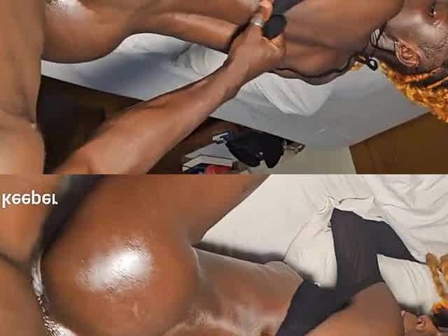 Ebony mother i'd like to fuck gets screwed after her massage