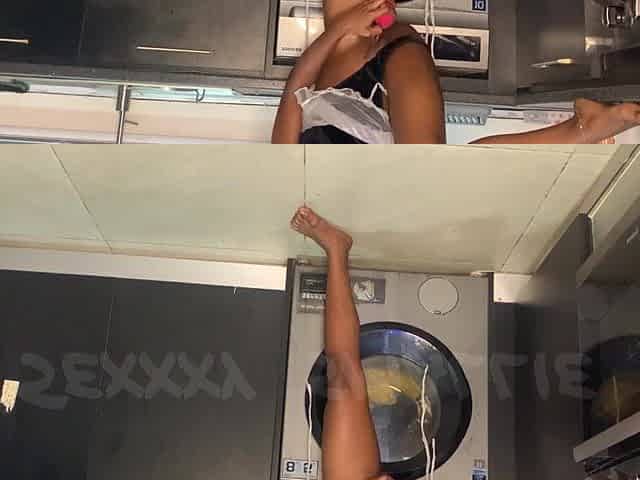 Ehorny black hottie squirting allover the kitchen