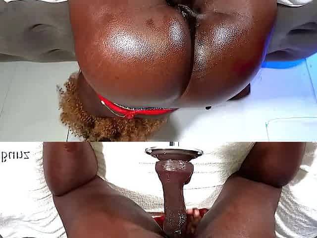Slutty black teen Stuffs her twat with MASSIVE Dildos.