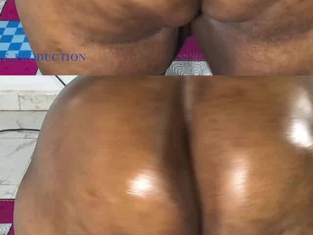 Young Ebony neighbor girl with plump and pert oiled butt