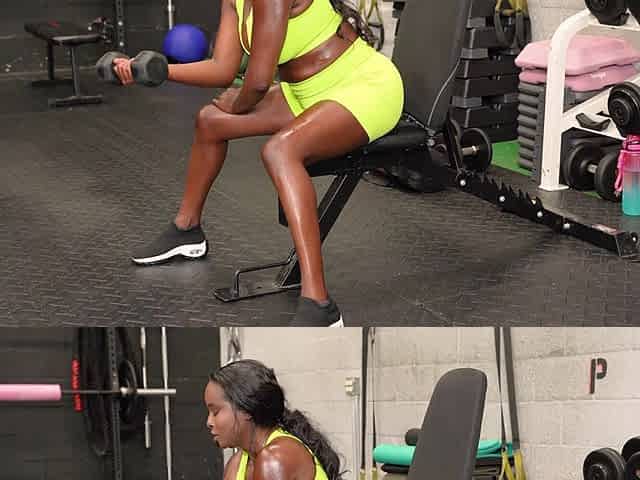 Fit black babe Naomi Foxxx fucking with a janitor in the gym