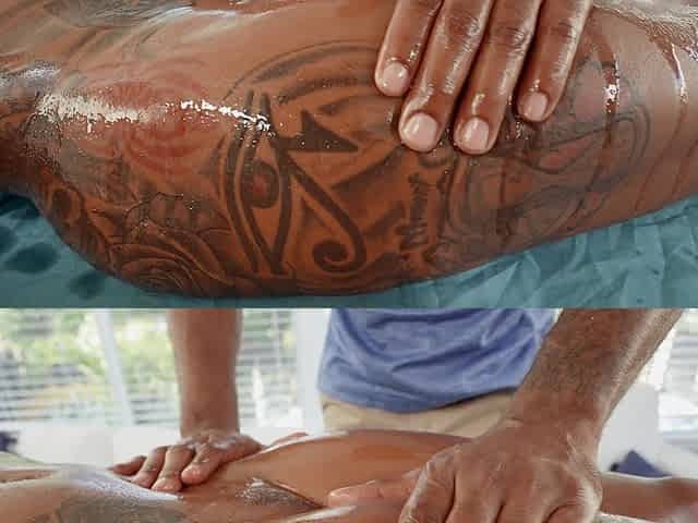 Massaging large ebony tits