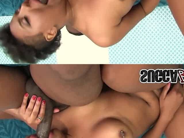Cute ebony gal with worthy booty and bazookas gets screwed and 69'd