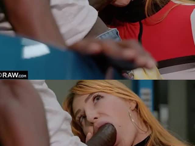 Golden-Haired woman got down on her knees to suck a large, ebony cock, previous to getting fucked into ass