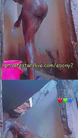 Hawt Afro Black Showers Outside Whilst Neighbors Sing Next Door
