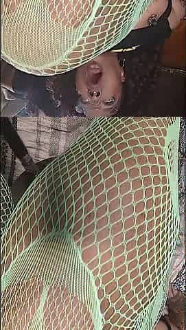 Big Black Babe in Fishnet Stockings Gets Cunt Pounded by