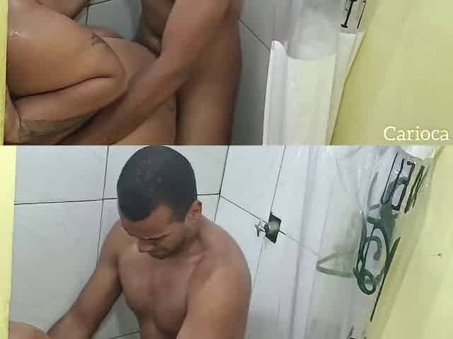 After an intensive screw my ally and I took a fine bathroom
