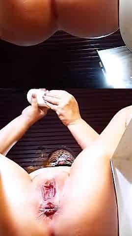 Anal close-up, black dildo
