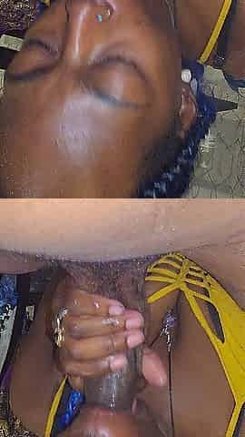Blond black Caribbean cutie giving a sloppy oral pleasure to a BBC