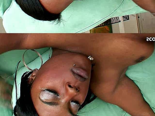 Black brunette with big juggs loves to feel long dick in her holes