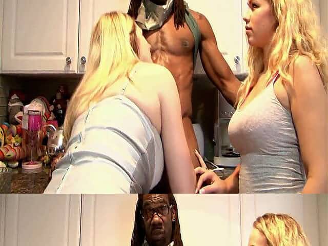 Flat chested blondie Chanel Grey hooks up with two big black guys