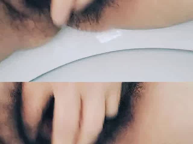 MILF stepmom peeing hairy pussy in bathroom