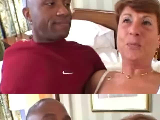 Grandma riding a dick gets banged in her wet pussy by a black dick