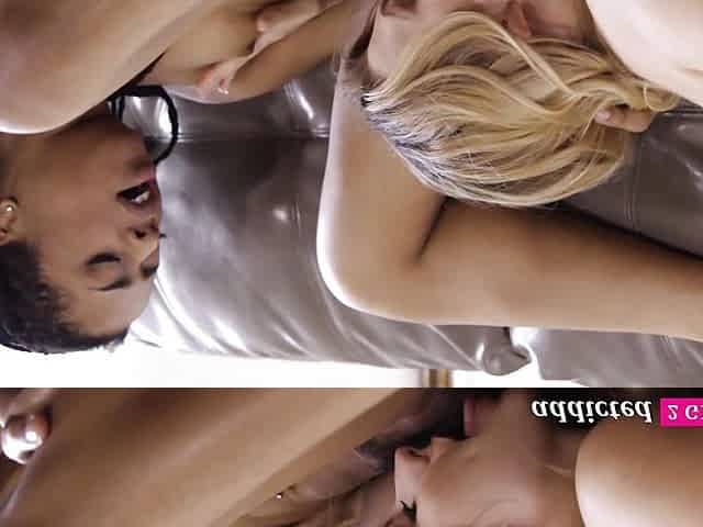 Lucky black man watches Lily Larimar and Charly Summer having sex