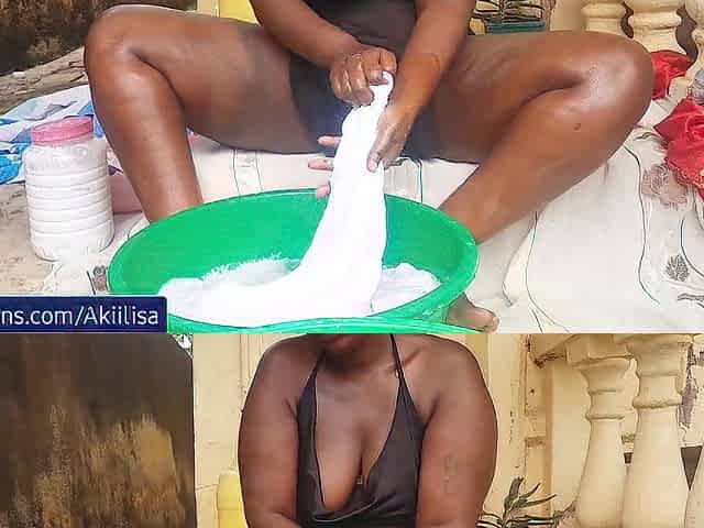 Laundry day: Afro playgirl AKIILISA thick haunches and hot cleavage