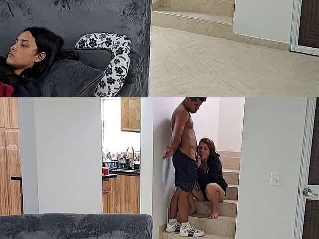 My stepmom sucks my cock in the cabin kitchen while our relatives are away