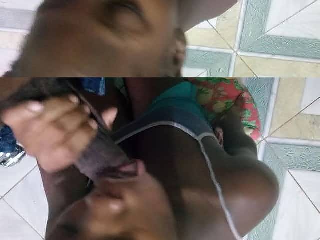 White girl on her knees sucking black man real good
