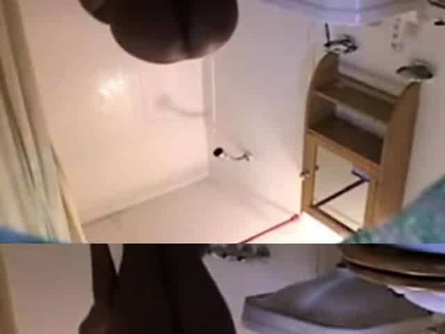 Black Stepsister bending in bathroom (spy cam)
