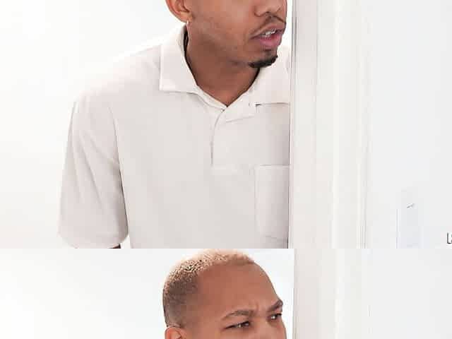 Massaged ebony MILF n GF banged in 3way by cleaning guy
