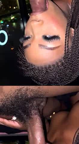Petite Japanese tattooed black thot gives a nice sloppy blowjob big dick college