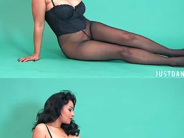 DANICA COLLINS-THE BLACK-SENSUAL CUTE BRUNETTE SHOWS UP IN BLACK PANTYHOSE WITH NAKED SEAMS