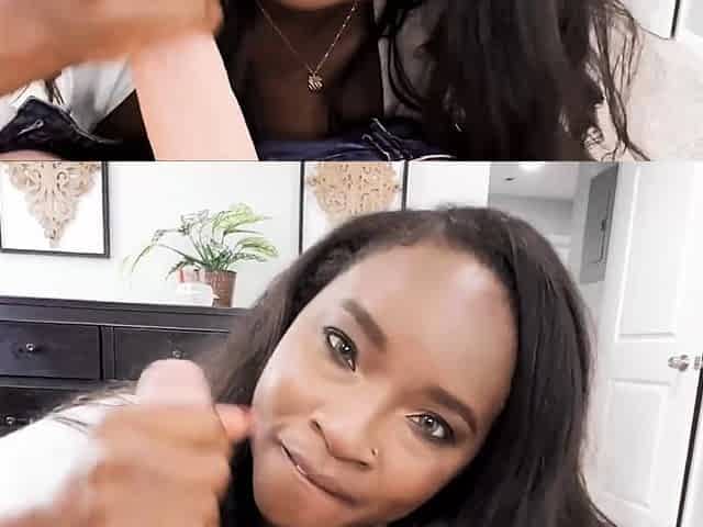 Deepthroat POV Black MILFY in underware sucks white weenie