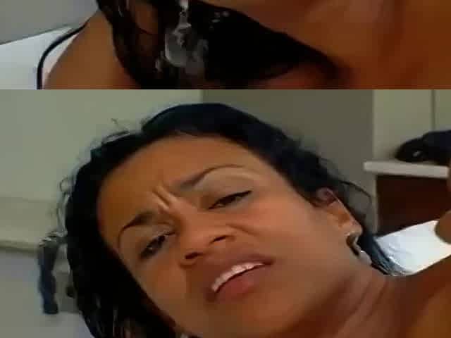MILF ebony fucked in threesome