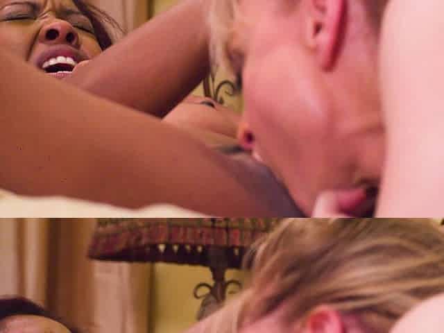 Ebony milf wearing lingerie during hard pounding and cunnilingus