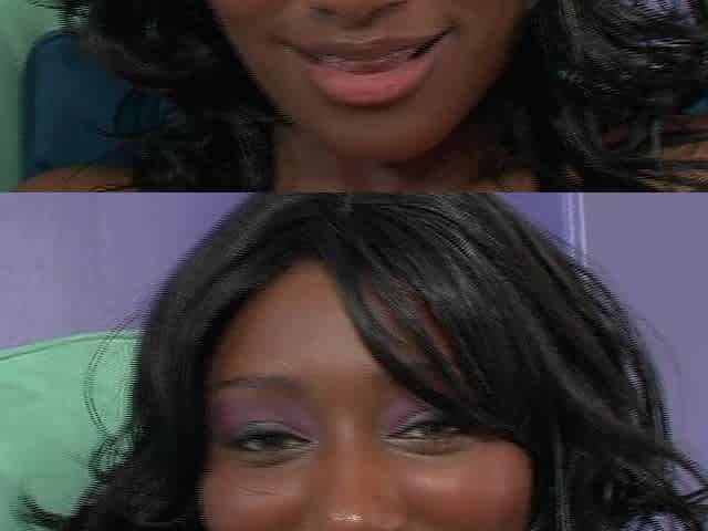 Huge tits ebony and her busty classmate licking each other's shaved pussy