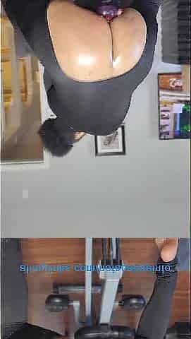 Thick butt black mother I'd like to fuck workout with her vibrator and squirt all over equipment
