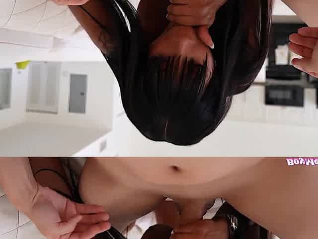 POV blowjob with a messy cumshot from ebony beauty Black Swan