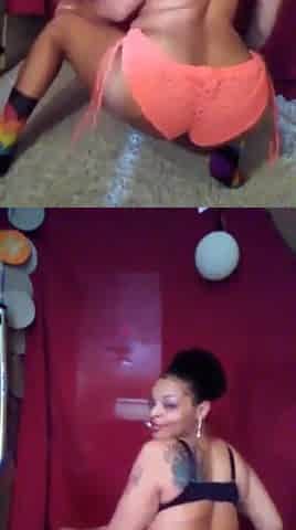 Slutty black gal gets her twat stimulated and very moist