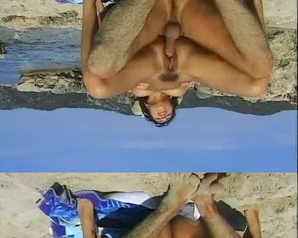 Stunning German girl with dark hair loves to fuck on the beach