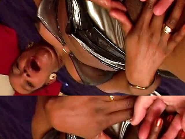 Giant white cock satisfies the mouth and the pussy on this gorgeous black babe