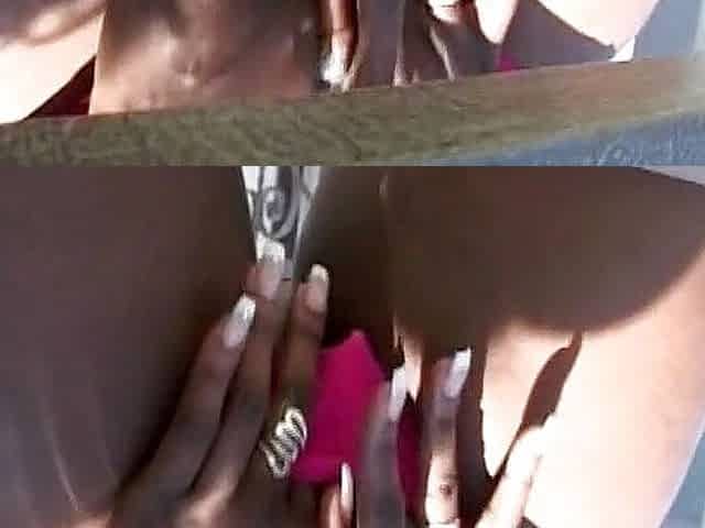 Pretty ebony girl with hairy twat gets both love holes slammed