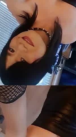 Trans Felixa in sexy black lingerie fucking with a dildo in a public bathroom