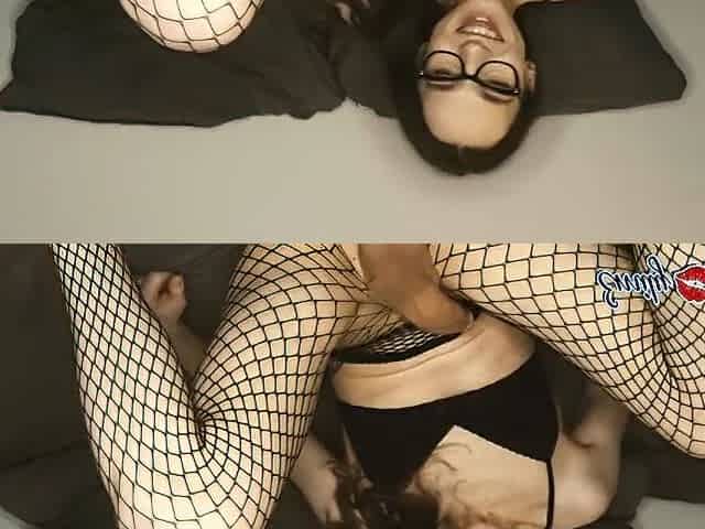 Carla Novaes transexual in black pantyhose cums while getting fucked